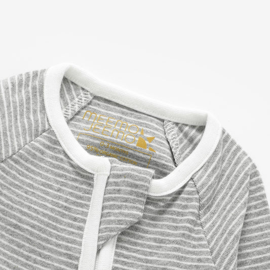 Organic Cotton Striped Peek-A-Poo Pajama in Light Grey