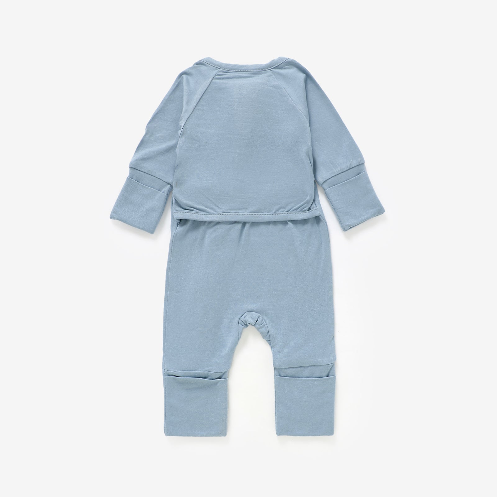 The perfect blend of comfort and convenience, now in a soft, classic baby blue. Made from breathable bamboo fabric, these pajamas feature a thoughtfully designed back opening for quick diaper checks - no unnecessary changes. Dual zippers at the top and bottom simplify dressing, while fold-over cuffs offer optional coverage for hands and feet. Gentle, calming, and made for easier nights (and mornings) with your little one.
