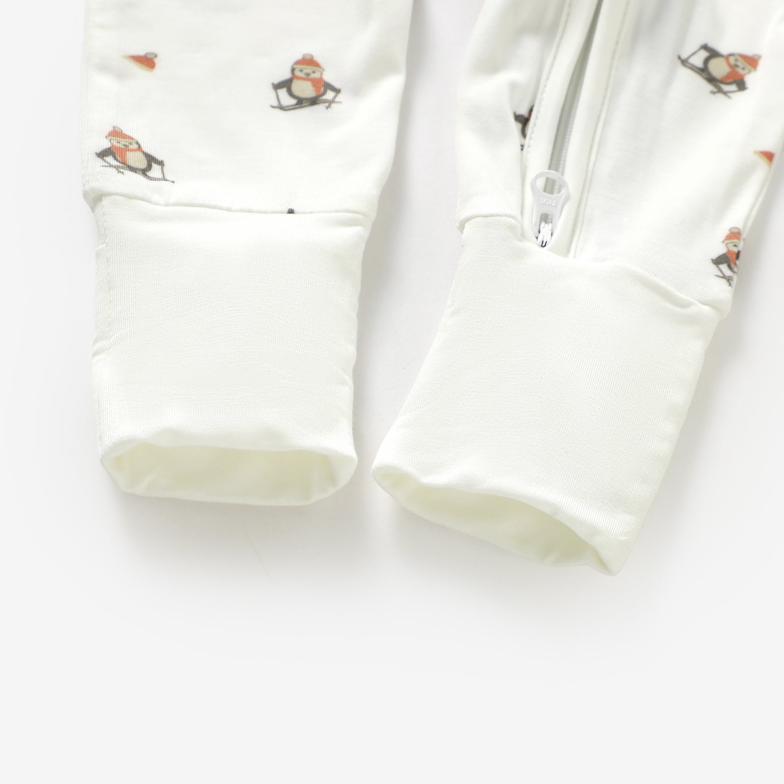 Crafted from buttery-soft, breathable bamboo and printed in our festive penguin print, these pajamas are made for the middle-of-the-night moments. The clever back opening allows for quick diaper checks without the undressing drama, while fold-over cuffs and dual zippers offer flexible coverage and easy changes. Cozy, calming, and beautifully practical - this is comfort you can count on, night after night.